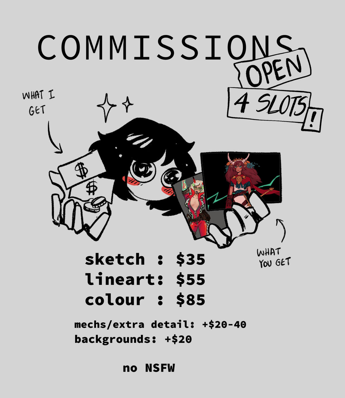 Commissions are open!! Dm me at my twitter to grab a slot!